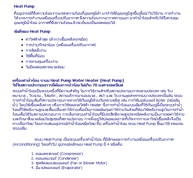 (ผลิตน้ำร้อน 1 ตัน ตั้งแต่ 15 องศาเซลเซียส ถึง 65 องศาเซลเซียส)